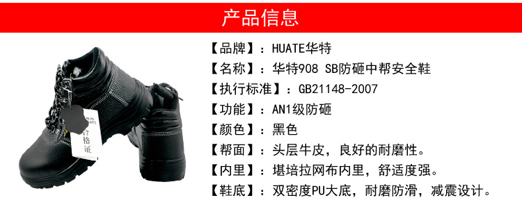 名稱 :華特908 SBP防砸防刺穿中幫安全鞋