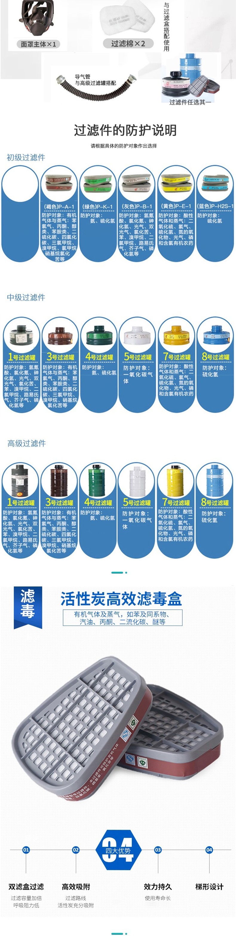 | 功能 | 防有機(jī)氣體、蒸汽、氯氣、二硫化碳、醇類、丙酮、硝基苯乙烷等 |