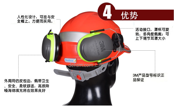 3M X4P3掛安全帽式隔音耳罩防噪音耳罩