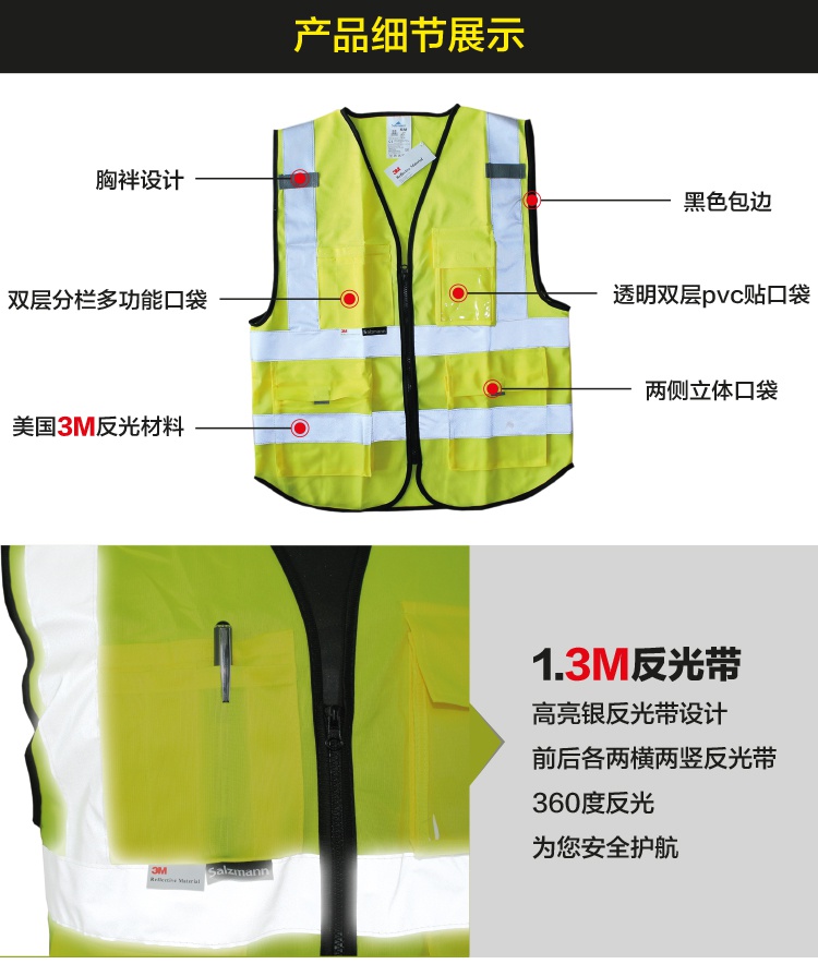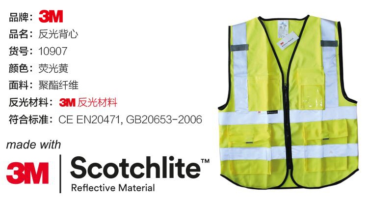 3M反光背心由公司精選高檔面料、進(jìn)口美國3M反光材料制作而成,外表美觀大方,做工精細(xì),面料柔軟,穿著舒適,進(jìn)口3M反光材料,具有反光強(qiáng)度高、示強(qiáng)等特點(diǎn)