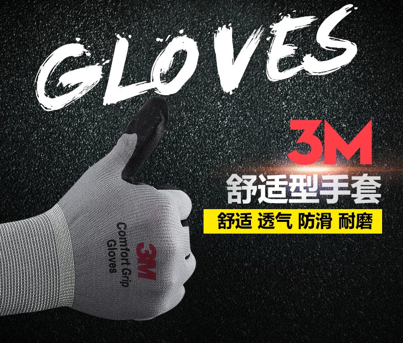 3M舒適型防滑耐磨丁腈涂層手套