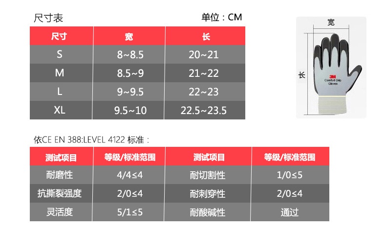 3M防割手套采用高性能織物制造,5級防割具備優異的防割耐穿刺和抗磨系列性能。