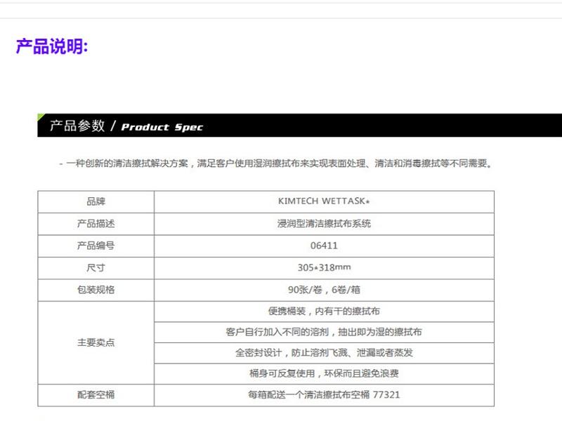 金佰利06411KIMTECH*金特*WETTASK*浸潤型清潔擦拭布一種創新的清潔擦拭解決方案,滿足客戶使用濕潤擦拭布來實現表面處理、清潔和消毒擦拭等不同需要;