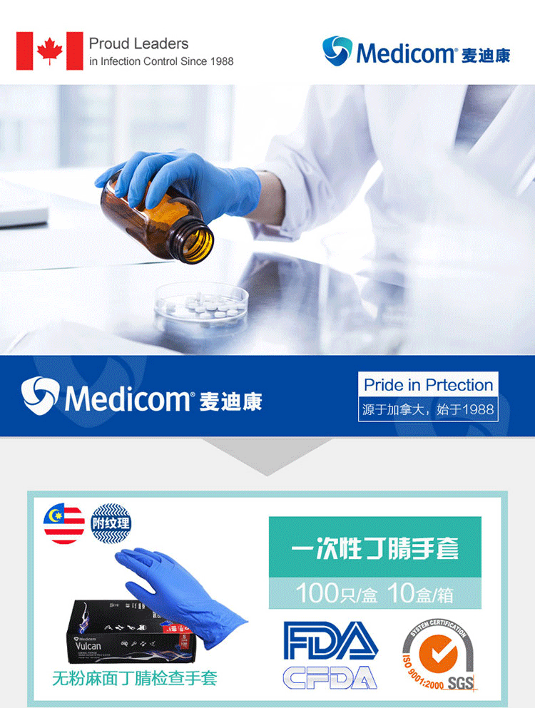 麥迪康1133一次性丁腈手套無粉麻面,耐酸堿、抗油污;
