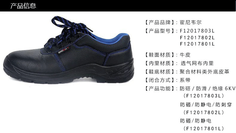 霍尼韋爾F12017803L F1系列低幫防砸電絕緣安全鞋采用優質頭層牛皮,具有良好透氣性;
