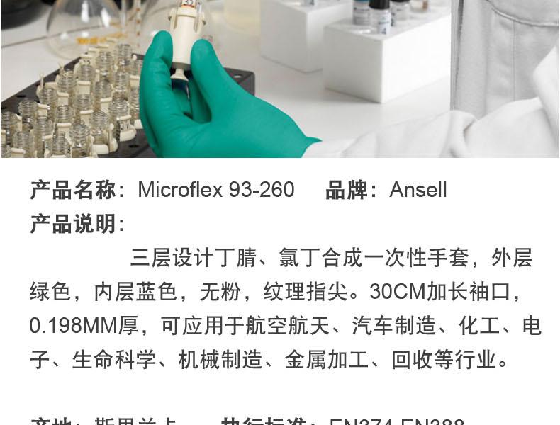 Ansell安思爾93-260MICROFLEX丁腈手套主要特點與優勢:三層設計,有效防護刺激性化學物質
