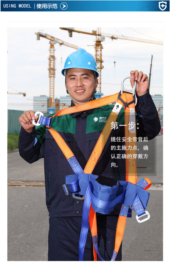 星工XGD-3雙大鉤五點式安全帶特點:抗拉力、質量輕、耐高溫;適用:建筑、電力、造船、安裝等行業的懸掛及高空作業。